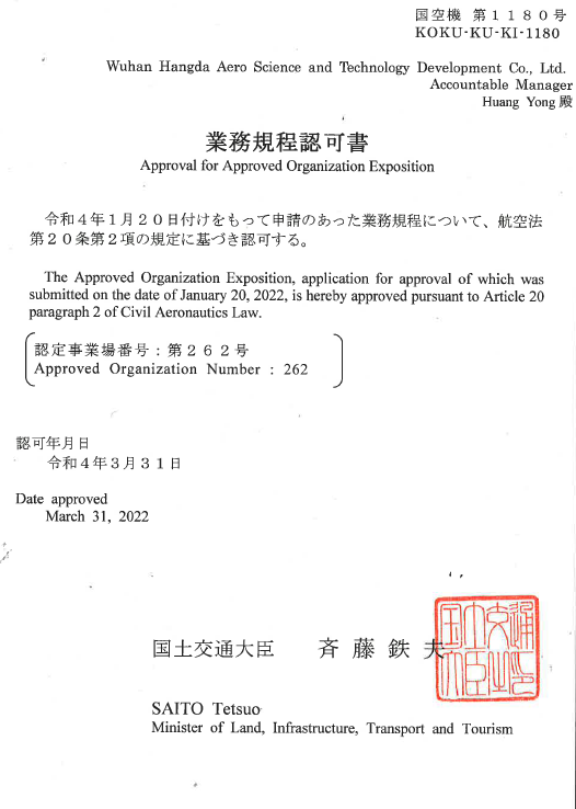 2001年10月 公司獲中國民航總局授權(quán)的民航維修許可證。